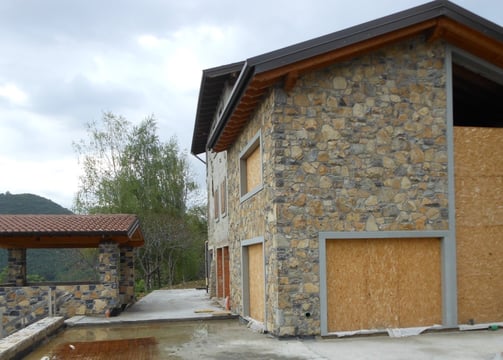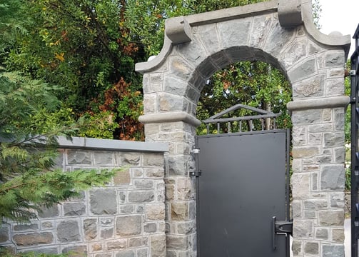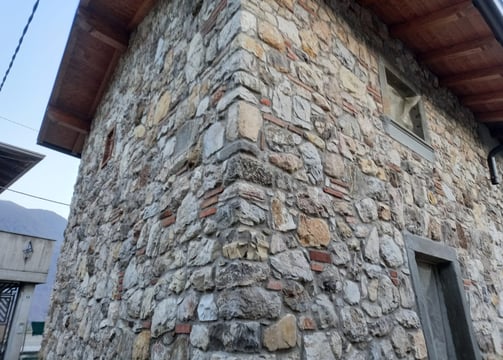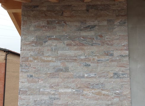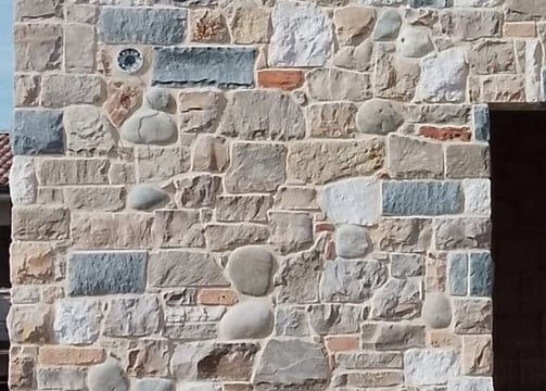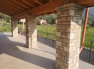 Pilastri in pietra mista Credaro e Trani con posa fugata